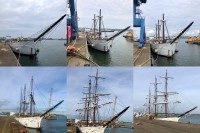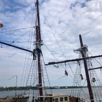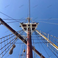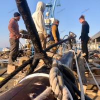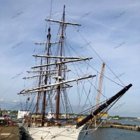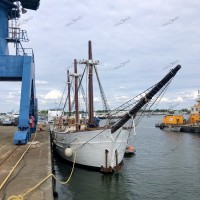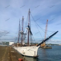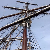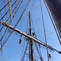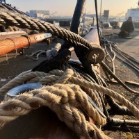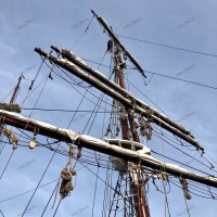 Pour remâter, et regréer le trois mâts malouin Le Français point de drisse à hisser, il faut une grue, une haute et grosse grue. Et des haubans, des rides, des étais, c’est à dire des câbles et des cordages de grosse section pour le gréement dormant. Puis des écoutes, des balancines, et oui des drisses pour le gréement courant. Parce que Le Français, c’est un mât de misaine et un grand mât portant des vergues et un mât d’artimon, avec corne et bôme. Une mâture pointant au dessus du pont à 30-35 m de hauteur avec des bas-mâts, des mâts de hune, puis les mâts de perroquet et de flèche. Le tout portant 800 m² de voilure, avec des phares carrés sur vergues, des voiles d’artimon en aurique et autres voiles d’axe.