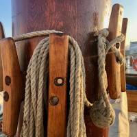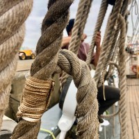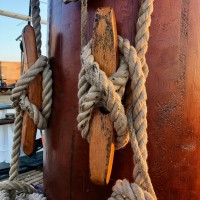 En obsolescence programmée pour cette dernière et en ré-émergence inéluctable pour la marine à voile traditionnelle, ce qui distingue ces femmes et hommes de cette marine du gigantisme de plus en plus hi-tech, outre la capacité à grimper et manœuvrer dans les mâtures, c’est essentiellement le matelotage. Parce qu’un navire à voile c’est avant tout des encablures de cordages à n’en plus finir qu’il faut fourrer, épisser, surlier, rider, amarrer, nouer, brêler, capeler, tourner et manœuvrer. C’est-à-dire la reproduction de gestes ancestraux. Un système en cordage, tel un palan ou un nœud adapté à une fonction, étant ce qui se fait de plus ancien dans l’histoire des techniques et qui reste le plus efficace. Et surtout qui ne demande aucune autre énergie que celle des marins eux-mêmes, pourvu qu’ils soient bien nourris…