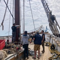 C’est le cas de Jeff Wagner, un marin au long cours dont l’expérience en gréement traditionnel dépasse de loin celle de tout officier issu des cursus actuels. Et Jeff Wagner avec son ouvrier-matelot-gréeur Vincent, assistés à distance par Nadège pour la partie administrative, soit la société EVT, c’est plus qu’une supervision et un appui technique, c’est l’assurance qu’en cinq jours, avec des équipiers pro-actifs, une coque nue devienne un fier navire à voile.
