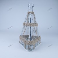 Mais le résultat est là : un habillage plaqué à bouteille tétraédrique, stable, qui ne tourne pas, et le tout sans colle, simplement formé d’un seul brin de cordage de chanvre naturel poli d’une vingtaine de mètre de long !!