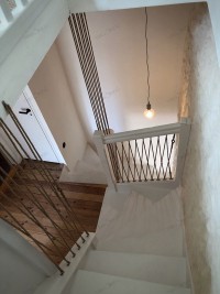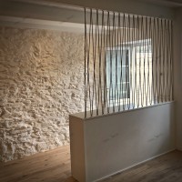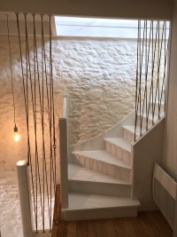 Réalisation d’un ensemble de garde-corps d’escaliers et d’habillages dans un esprit de « décor au naturel » avec une volonté de rappel du monde maritime pour cette ancienne maison bretonne rénovée.
