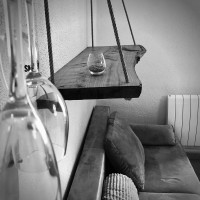 Le client souhaitait un aménagement avec du mobilier suspendu en bois massif et une touche d’authenticité naturelle…
