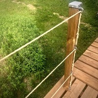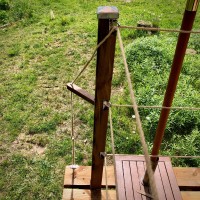 Afin que les poteaux d’angle ne fléchissent, nous avons opté pour un montage peu courant dans ce genre de réalisation, mais bien connu des gréeurs et marins à la voile : barre de flèche et galhauban ! Non seulement il s’agit d’un montage solide, mais il présente également l’avantage de ne pas “gâcher” la vue, car très discret ; ce qui n’aurait pas été le cas avec des jambes de force en bois comme solution de contreventement.