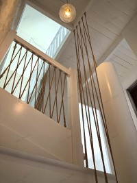 Réalisation d’un ensemble de garde-corps d’escaliers et d’habillages dans un esprit de « décor au naturel » avec une volonté de rappel du monde maritime pour cette ancienne maison bretonne rénovée.