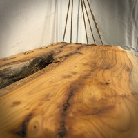 Le talent et l’imagination de Pierre-Yves a permis de valoriser cette dosse d’if pour en faire une magnifique étagère suspendue conservant toute l’authenticité naturelle des matériaux nobles employés.