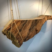 Le talent et l’imagination de Pierre-Yves ont permis de valoriser cette tranche cyprès pour en faire une magnifique étagère suspendue conservant toute l’authenticité naturelle des matériaux nobles employés.