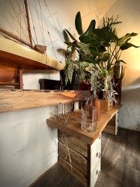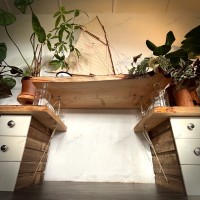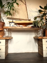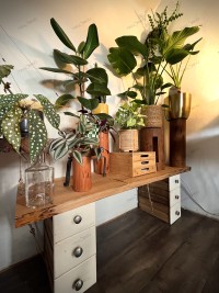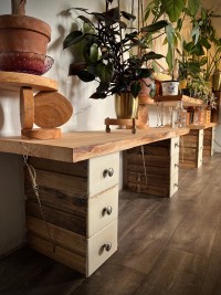 - Piétements : tiroirs « surcyclés » d’un meuble d’atelier réformé des années 1960
