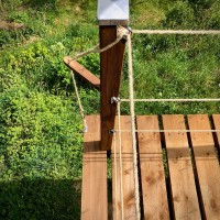 Afin que les poteaux d’angle ne fléchissent, nous avons opté pour un montage peu courant dans ce genre de réalisation, mais bien connu des gréeurs et marins à la voile : barre de flèche et galhauban ! Non seulement il s’agit d’un montage solide, mais il présente également l’avantage de ne pas “gâcher” la vue, car très discret ; ce qui n’aurait pas été le cas avec des jambes de force en bois comme solution de contreventement.