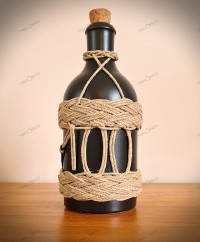 J’ai donc eu le plaisir de concevoir et réaliser le matelotage de cette bouteille en grès avec un cordage naturel, en souvenir de la matière qu’a travaillé cet artisan il y a fort longtemps…