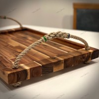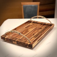 Désirant présenter leur poulette des vignes avec un esprit naturel, nous avons opté pour plateau en acacia (réalisé par joël Six) et confectionné des poignées matelotées en cordage de chanvre avec de petites surliures “glaz”, rappelant le lien maritime breton et à la côte d’Émeraude de Natali et Vincent.